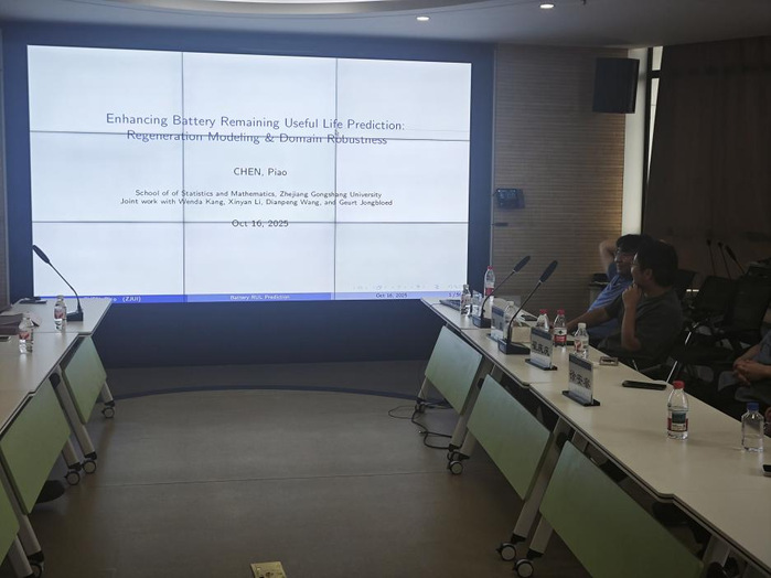 2025年10月16日下午,浙江大学陈飘教授应邀来我校开展以“Enhancing Battery RUL Prediction: Regeneration Modeling & Domain Robustness”为主题的学术讲座,本次讲座在综合楼644会议室举行,由统计与数据科学学院徐安察教授主持。