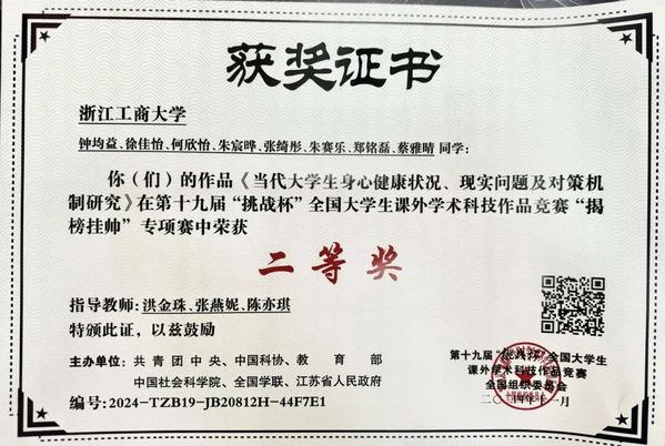 第十九届“挑战杯”全国大学生课外学术科技作品竞赛“揭榜挂帅”专项赛二等奖